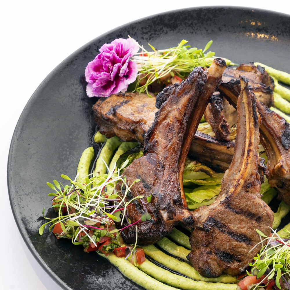دنده گوسفندی گریل شده، سیب تنوری، دیپ آووکادو